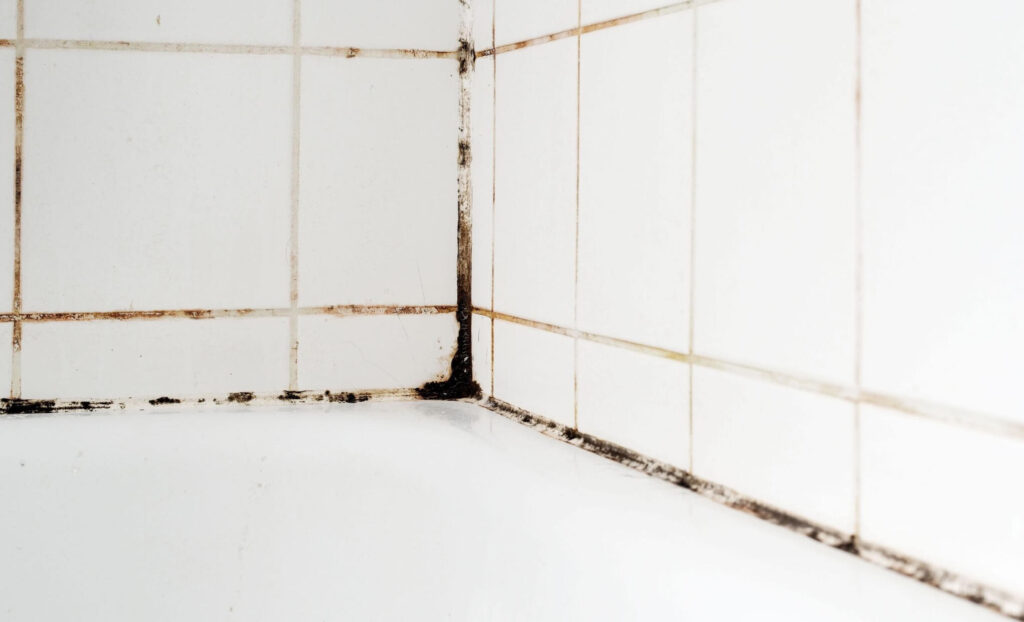 Strong, chlorine-based cleaners can attack grout and silicone, making them porous and even more absorbent to moisture and mold spores. The breeding ground becomes better instead of worse.