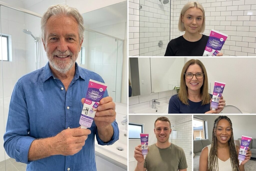 „Endlich kein mühsames Schrubben mehr. Einfach das Gel auftragen, kurz warten und der schwarze Rand war beim Abwischen einfach weg. Ein echter Gamechanger für mein Bad!“ (Thomas B. aus München)