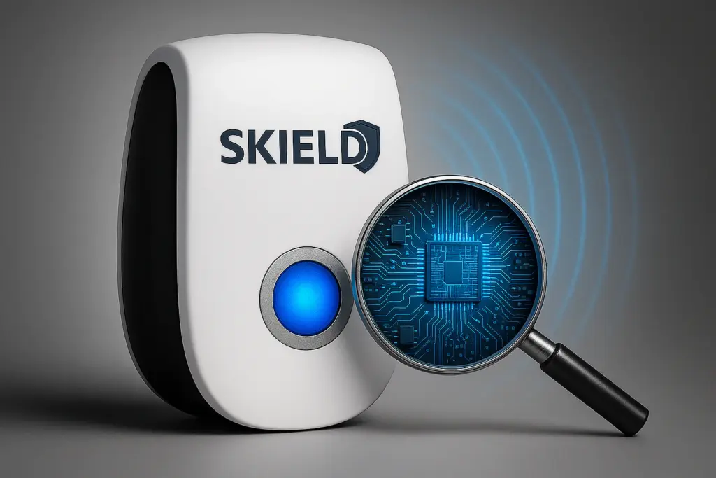 Der BugShield™ arbeitet mit modulierter Hochfrequenztechnologie, die speziell darauf ausgelegt ist, Milben zu stören – nicht Menschen.