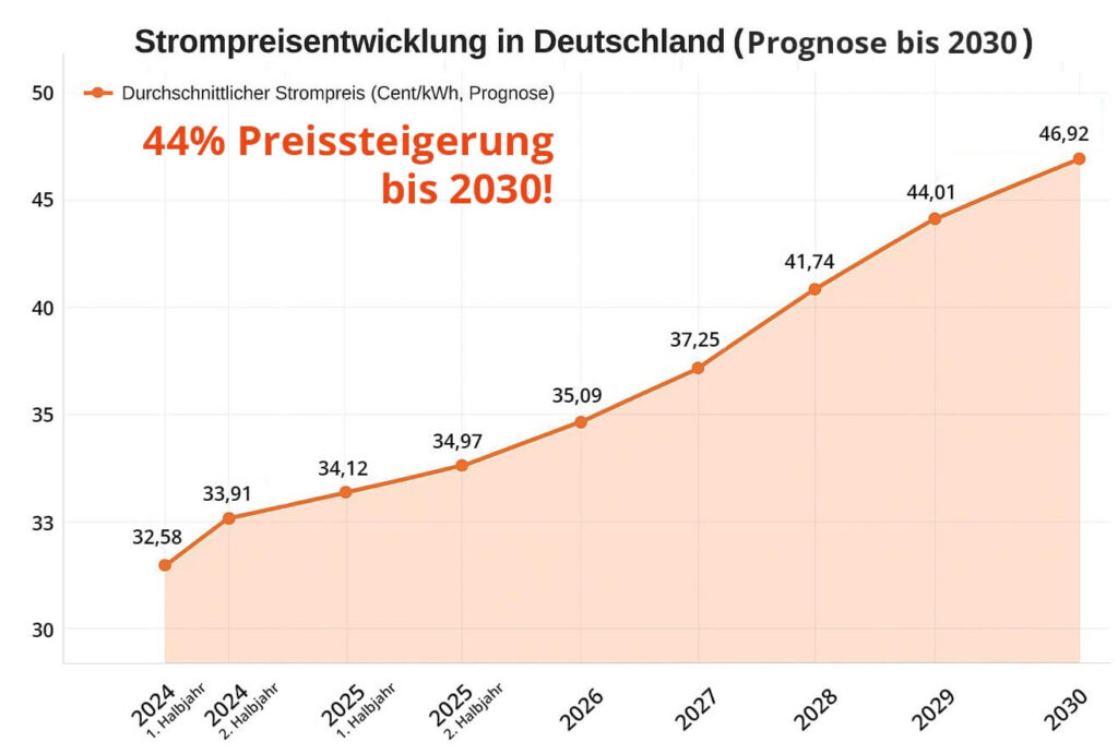 Marktanalysen zeigen: Nach einem Anstieg um über 60 % in den letzten Jahren wird der Strompreis voraussichtlich bis 2030 noch weiter steigen!