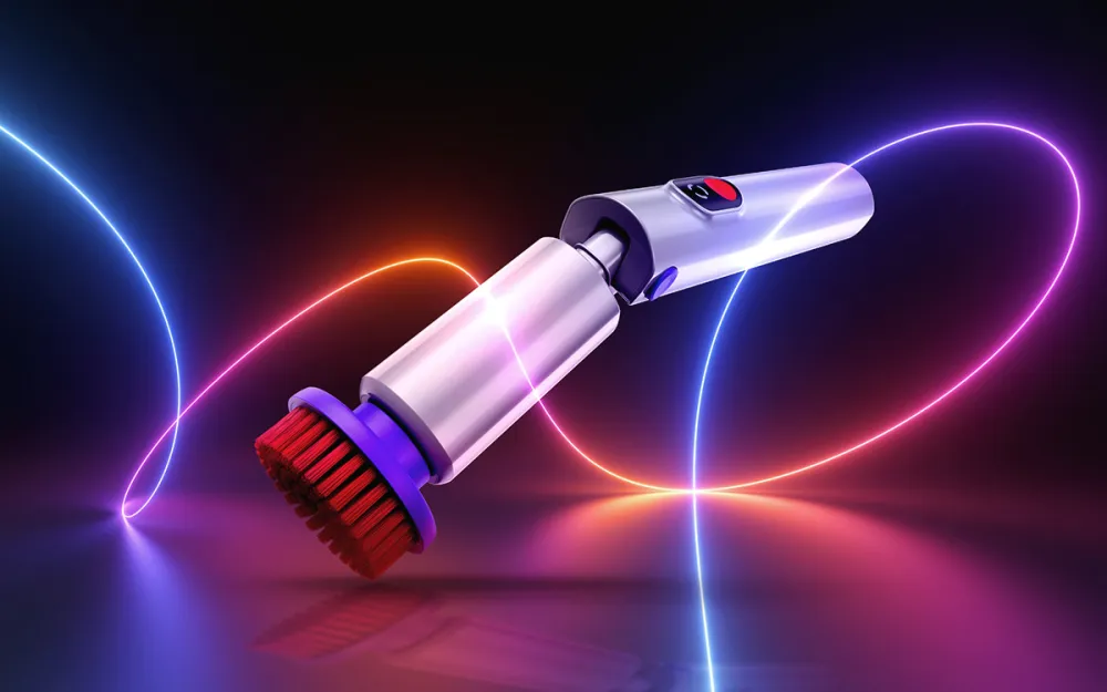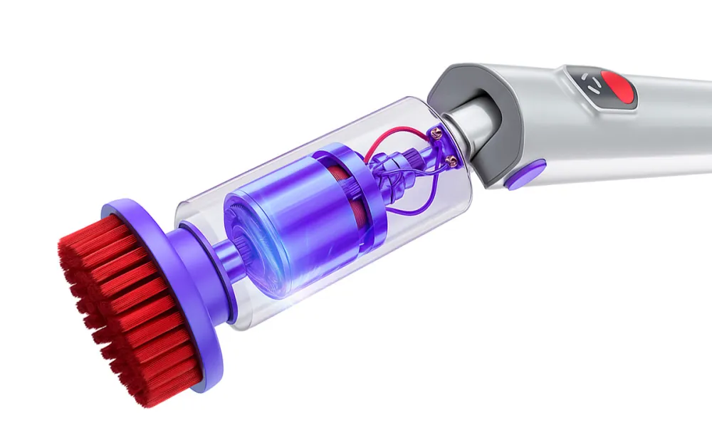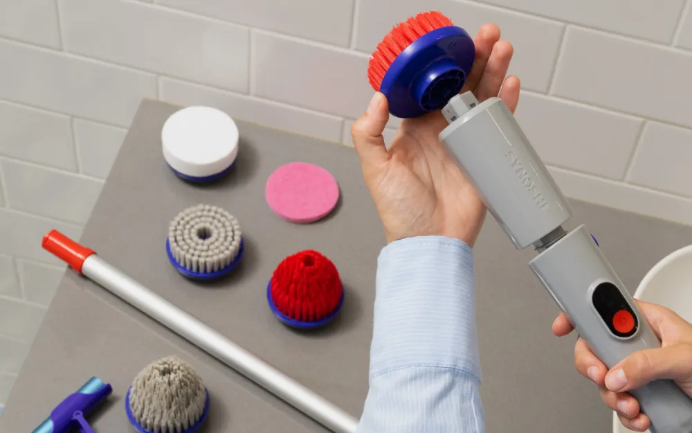 “A quick click, and she switched to a dome-shaped brush for a stovetop with burnt-on food residue. Another click to a soft brush for a velvet chair with visible dust and pet hair. Each surface transformed in seconds.”