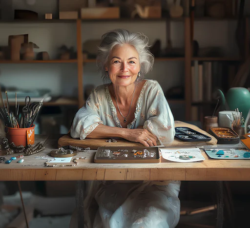 „Meine Hände sind einfach nicht mehr das, was sie einmal waren“ sagt Liselotte mit einem warmen Lächeln. „Ich hätte nie gedacht, dass sich meine Stücke verkaufen würden, aber ich möchte sie lieber getragen und geliebt sehen, als in einer Kiste zu verstauben.